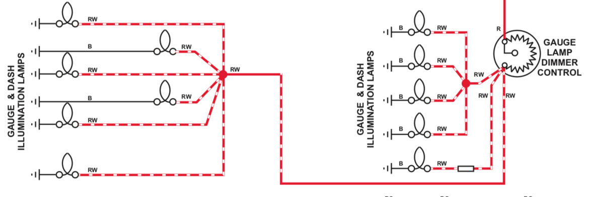 Vaak wordt de rheostat doorverbonden omdat de instrumentenverlichting zo weinig licht oplevert dat dimmen niet nodig is.