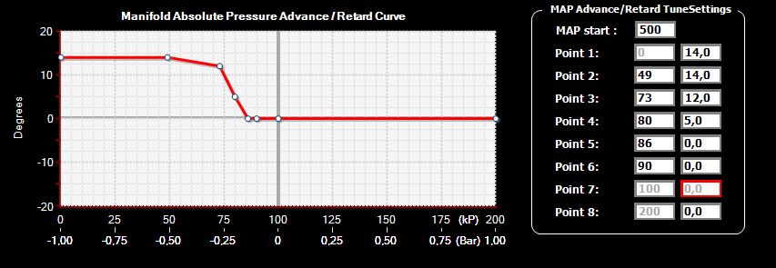 - “Boost retard” is een term die men gebruikt bij supercharged/boosted motoren. Als de druk in het spruitstuk groter wordt dan de atmosferische druk, mag de vonk later komen. In het kwadrant rechtsonder kunnen we die waardes kwijt.
