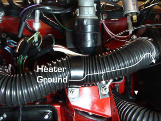 | Massapunt voor onder het dashboard Wordt gebruikt door: ruitensproeiermotor, instrumentenverlichting (kleine meters), km- toerenteller massa, controlelampje gevarenlichtschakelaar, sleutelverlichting, ruitenwissermotor, gevarenlicht relais (69 - vroege 72), transmissie tunnel lamp (69 - 72), zender brandstofmeter, achterlicht frame. Bij late modellen wordt deze aansluiting ook gebruikt voor de voltmeter, heater control, gevarenlicht- en ruitenwisser signaleringslampjes, schakelaar voor de binnenverlichting, de EGR service module bij de 75 & 76 modellen en de kentekenverlichting. |