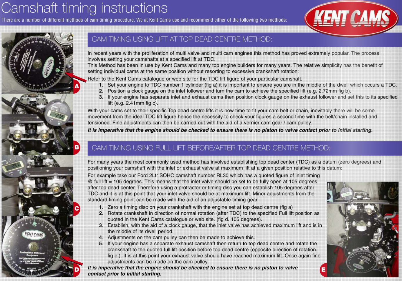 Met een gradenboog gemonteerd op de krukas is 103 graden na BDP in te stellen en op dit punt moet de inlaatklep volledig open zijn dus full lift hebben. Deze Full Lift is (eenvoudig) te meten met een micrometer