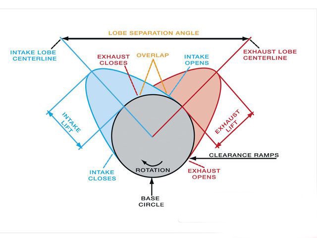 | Lobe separation (angle calculated) | 103 Deg Inlet centerline + 113 Deg Exhaust centerline = 216/2 = 108-Deg lobe separation angle |