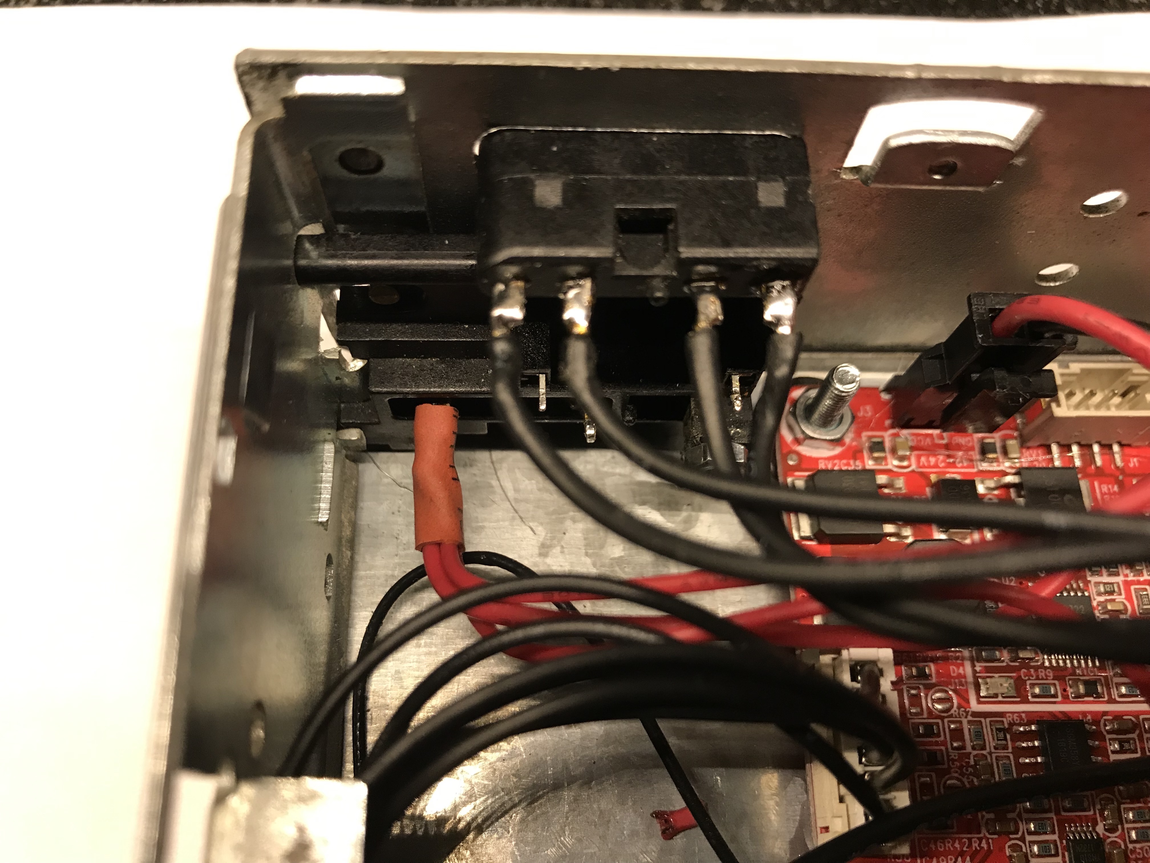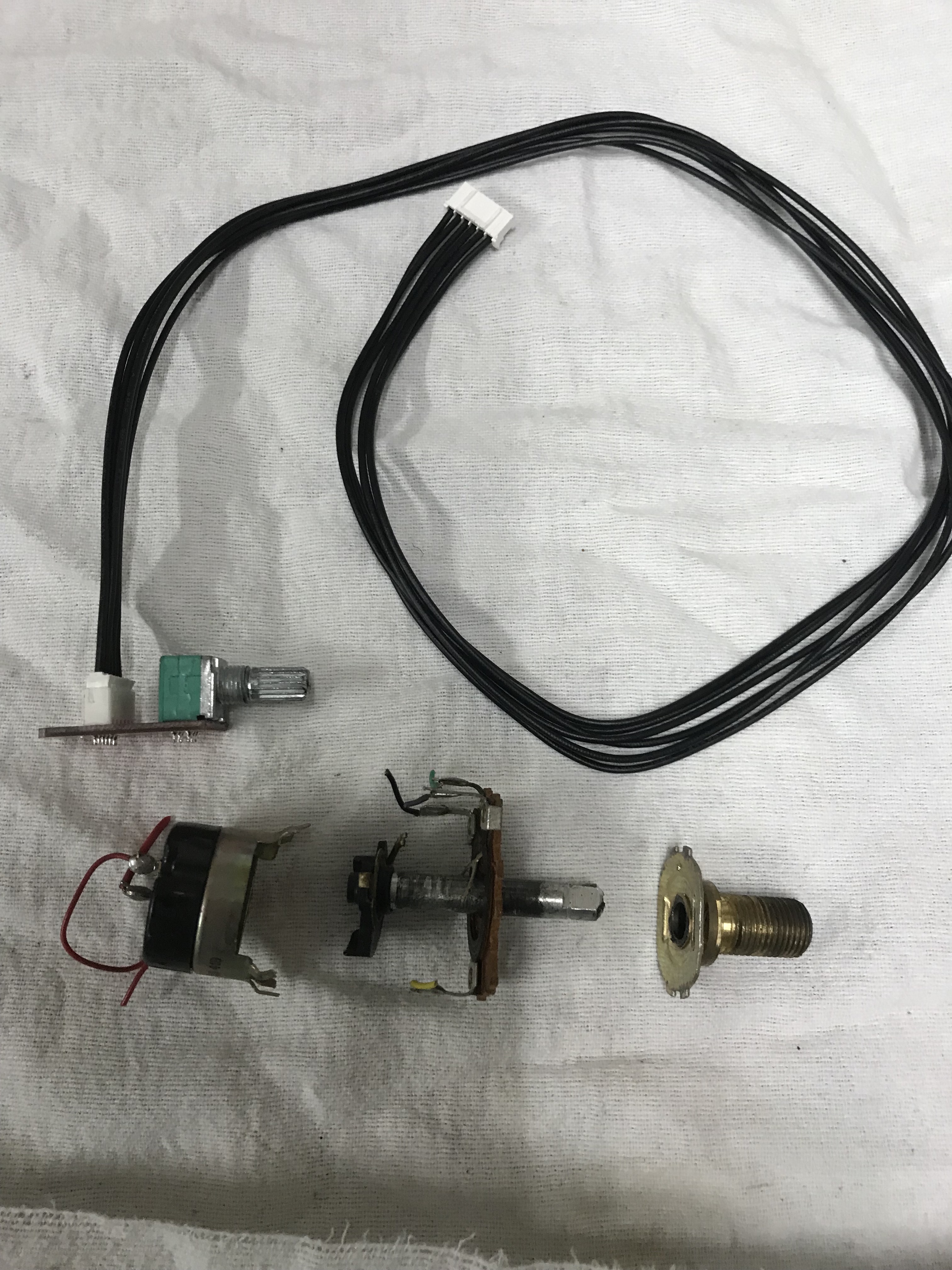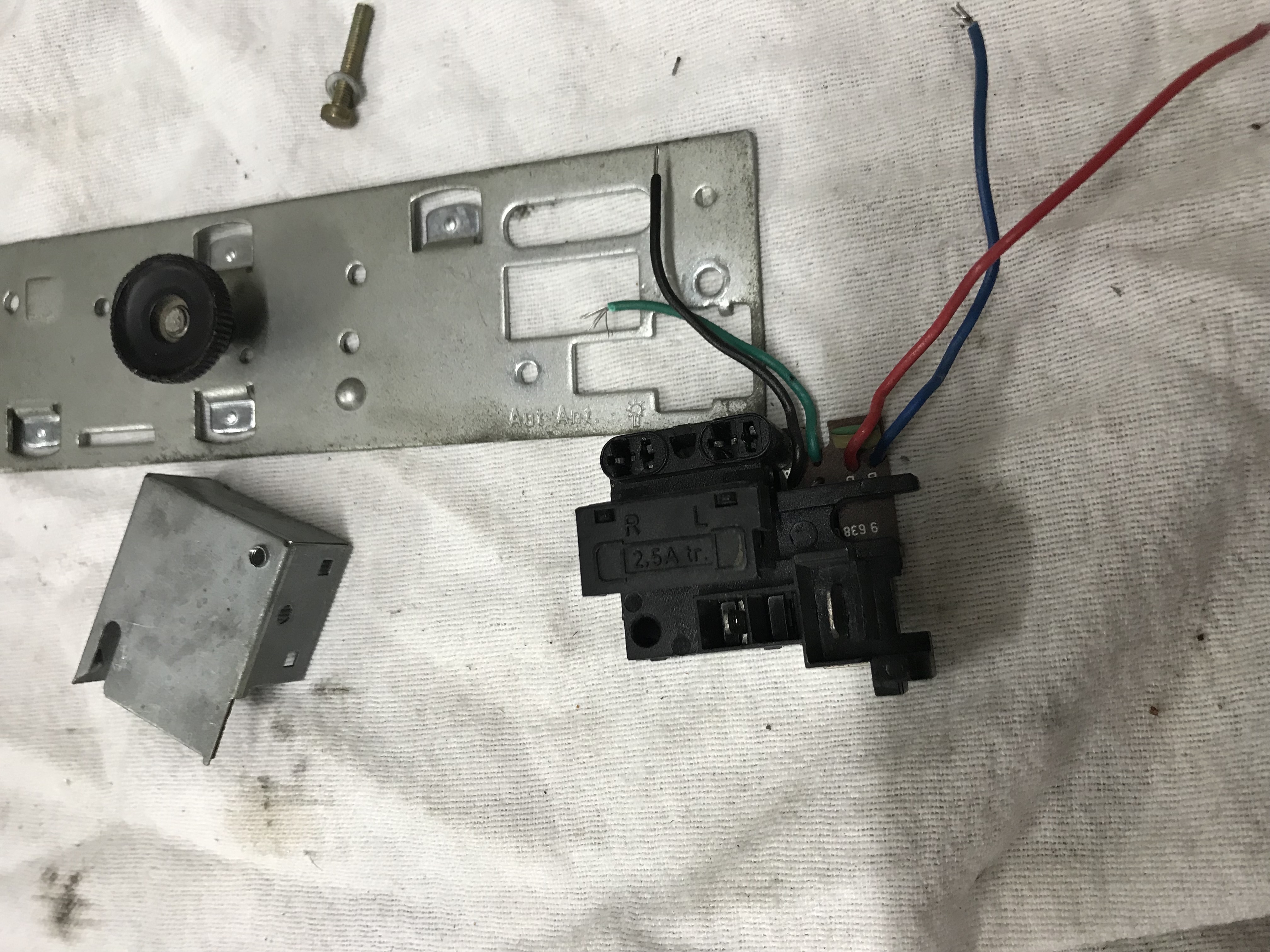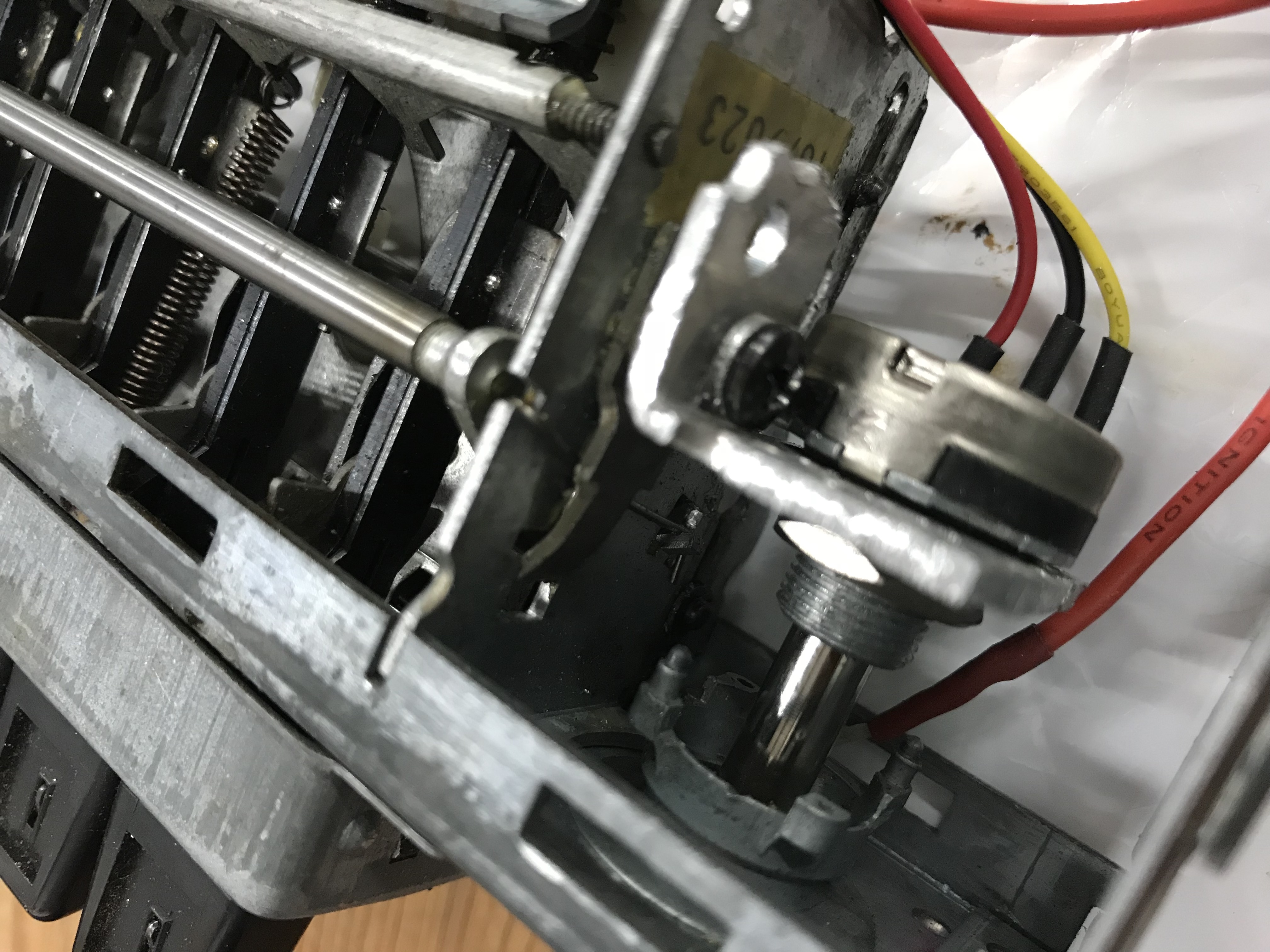 Iets meer een uitdaging is de potmeter voor het volume. We willen uiteraard het volume bedienen met de originele knop van de radio maar zowel de montage als de lengte van de bedieningsas vraagt enige aanpassing. De behuizing van de originele volume knop is ook meteen de bevestiging voor de radio in het dashboard.