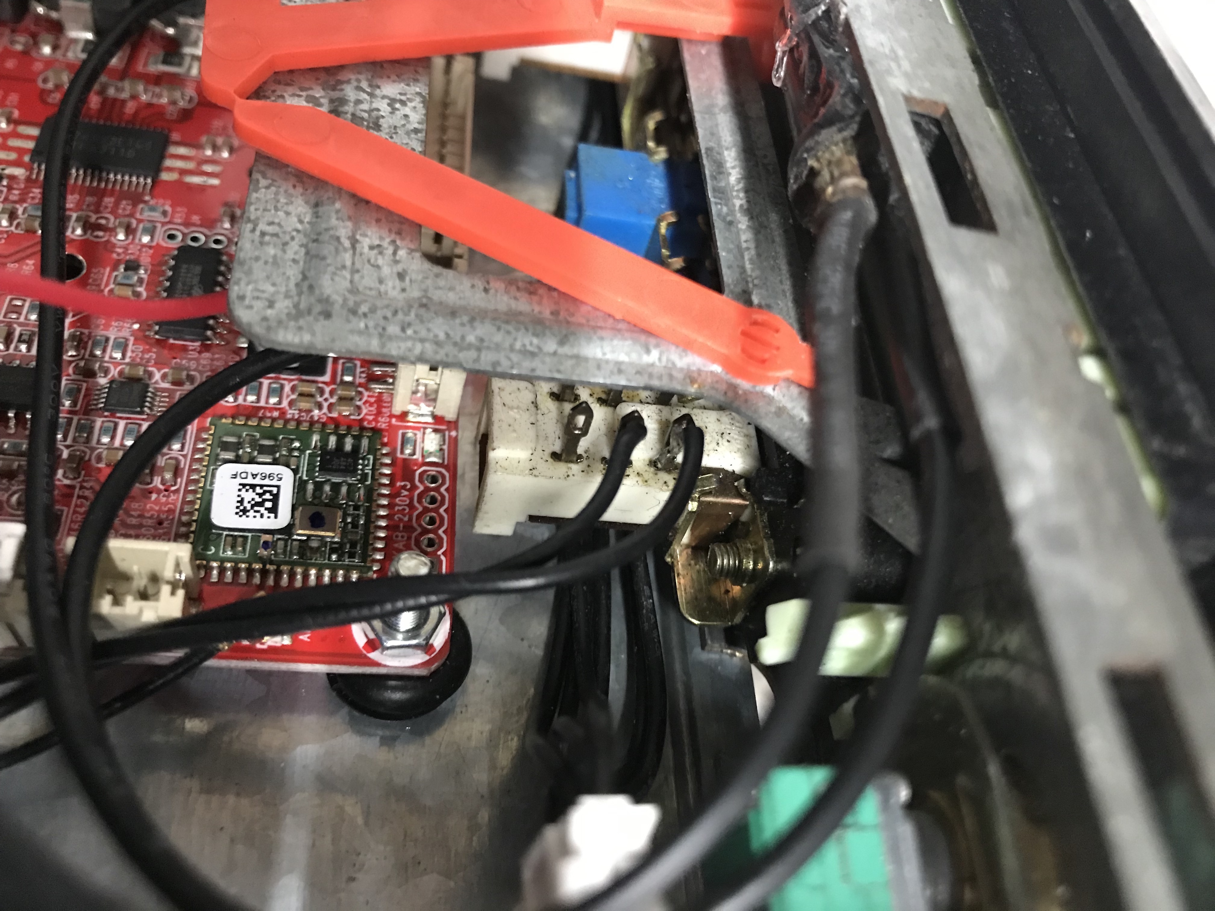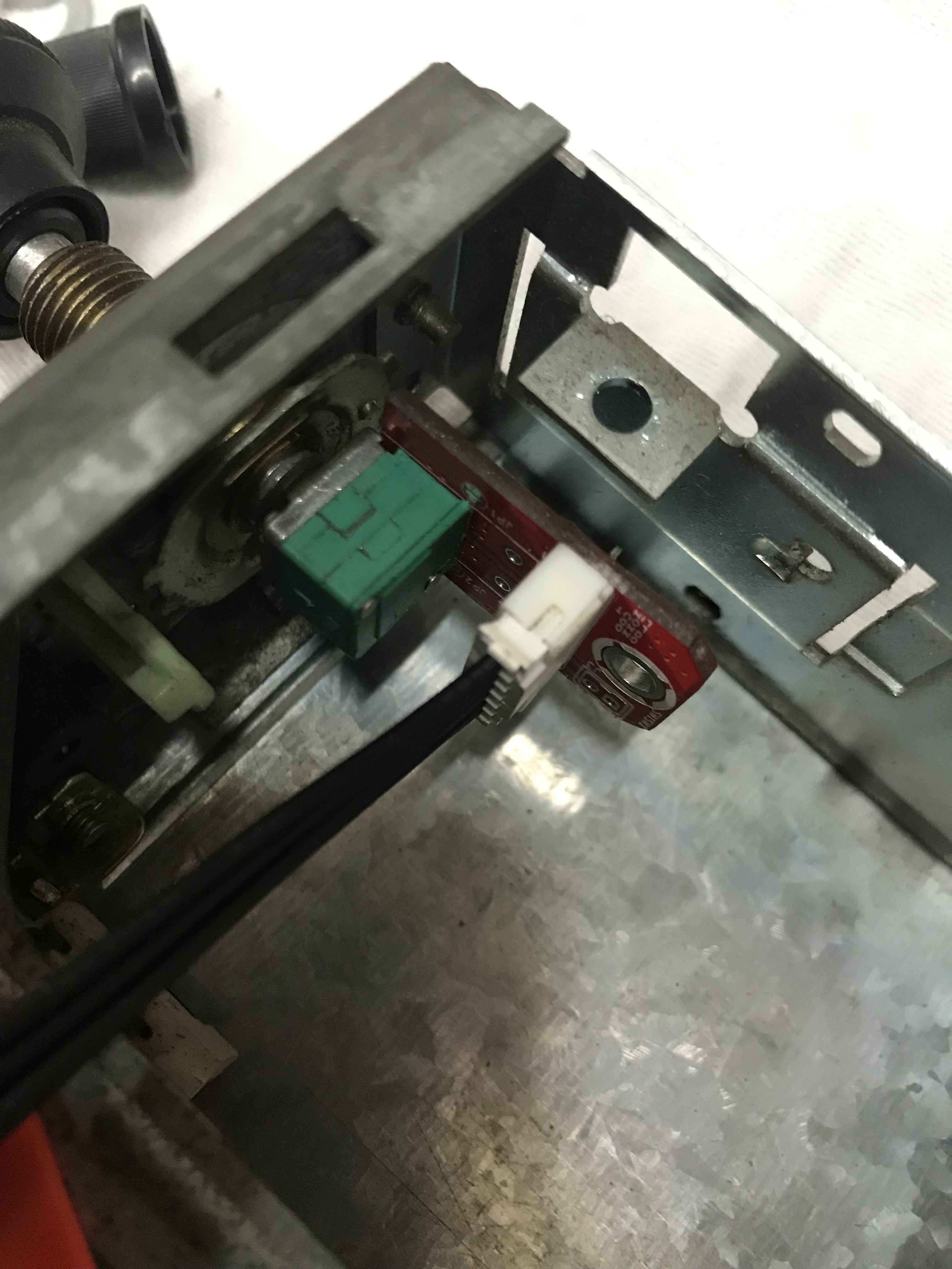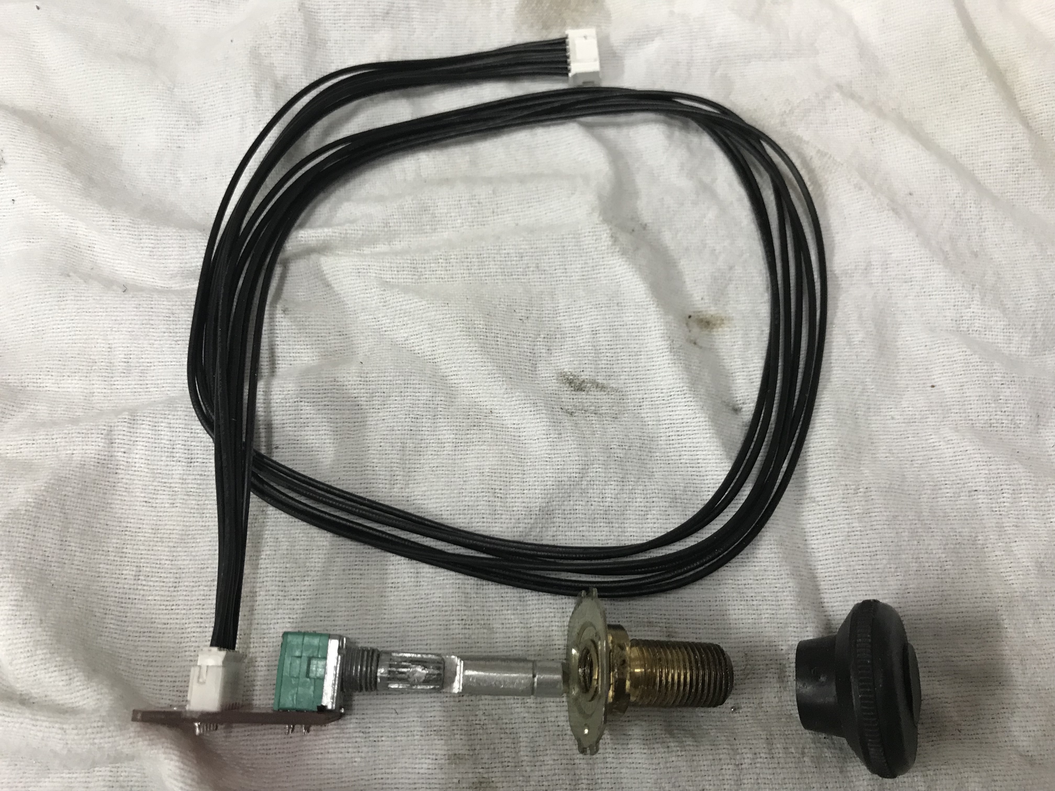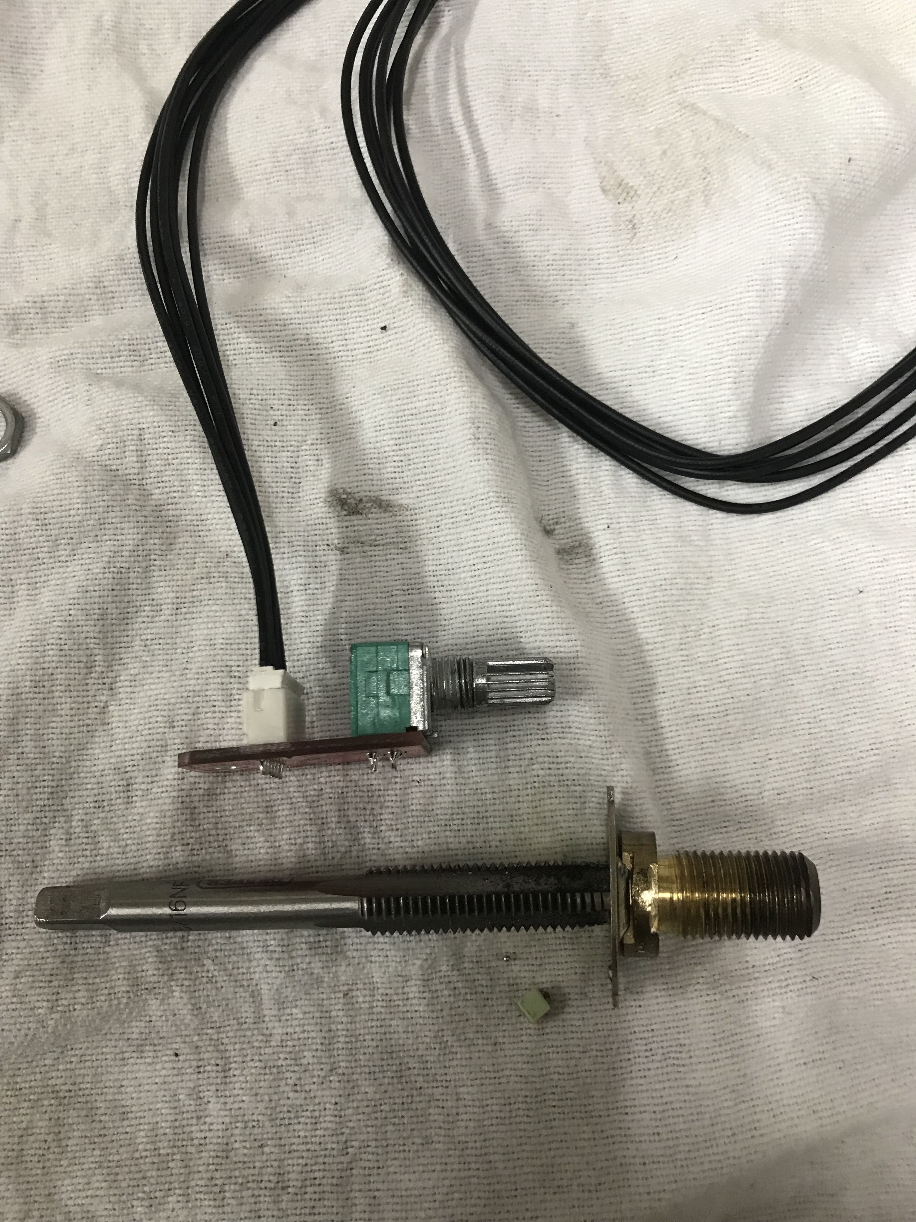 Iets meer een uitdaging is de potmeter voor het volume. We willen uiteraard het volume bedienen met de originele knop van de radio maar zowel de montage als de lengte van de bedieningsas vraagt enige aanpassing. De behuizing van de originele volume knop is ook meteen de bevestiging voor de radio in het dashboard.