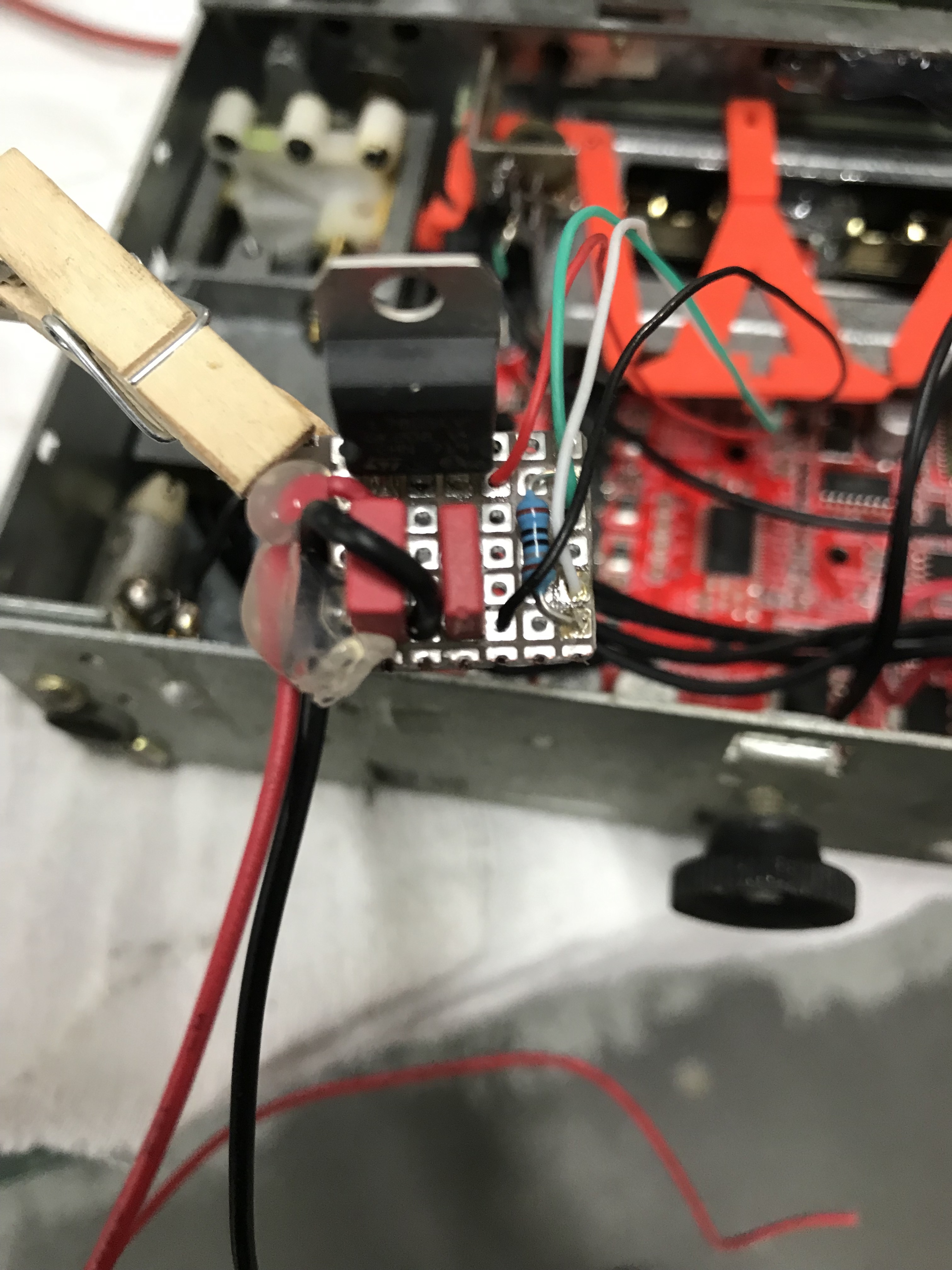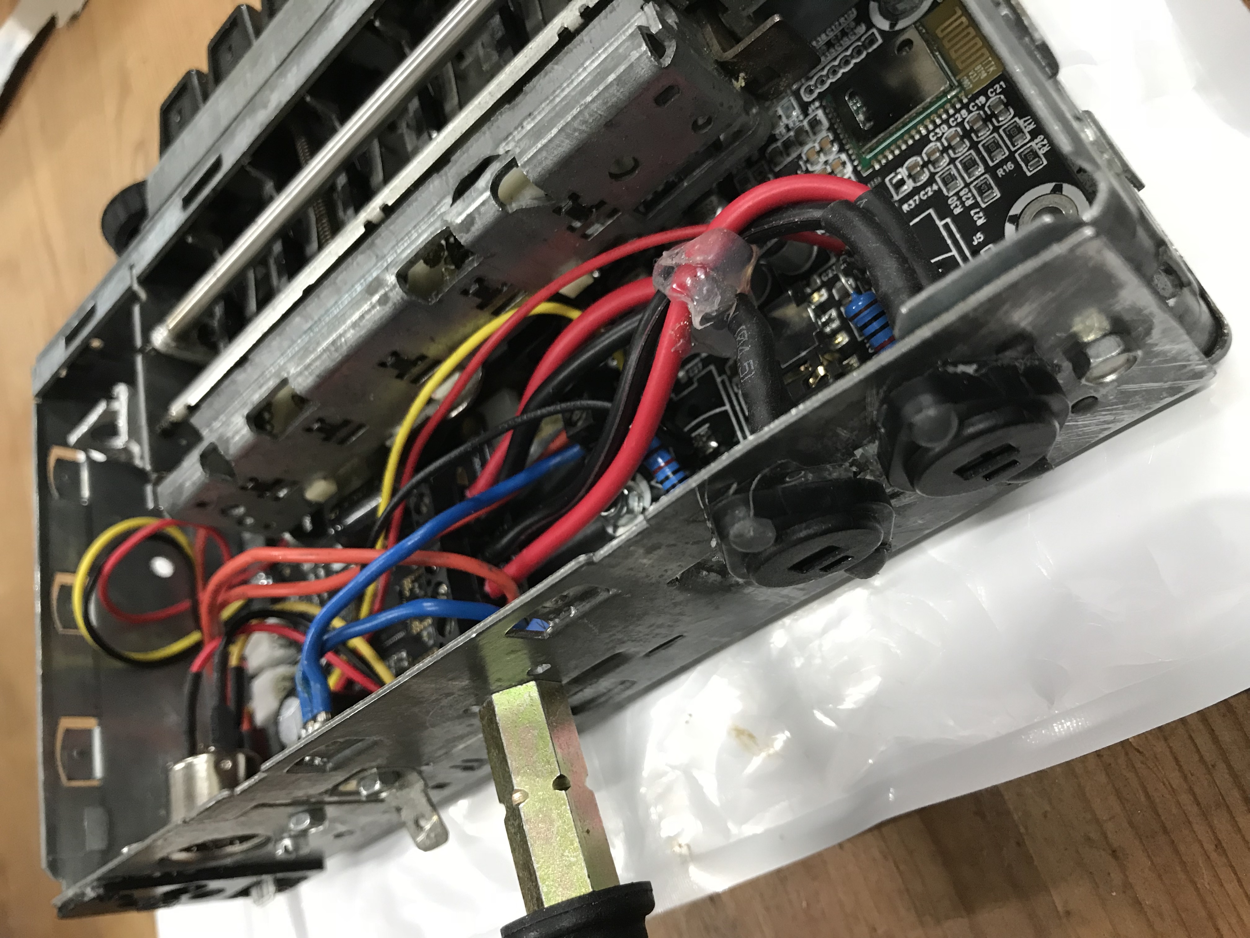 Met wat extra creativiteit bouwen we ook een USB aansluiting achter de middelste knop van de radio. Niet om te gebruiken als audio input maar, als oplaadpunt voor de telefoon.