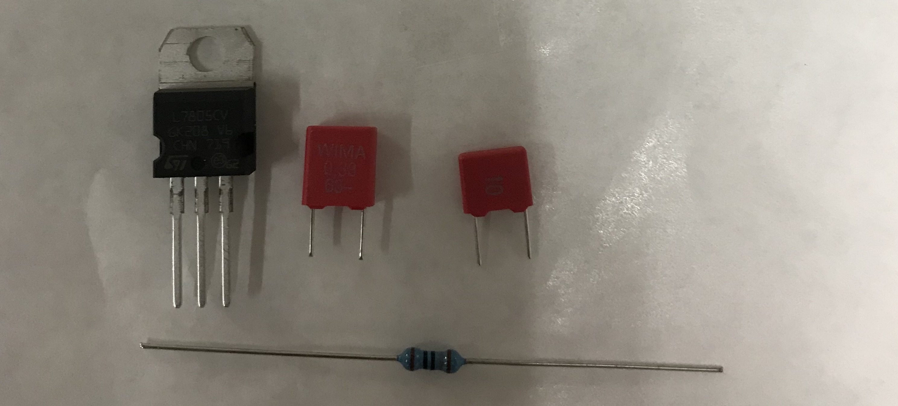 Daarnaast staat op pin 1 en 4 van de USB aansluiting 5 volt. Wij hebben 12 volt in onze radio dus moeten die terug brengen naar 5 volt.