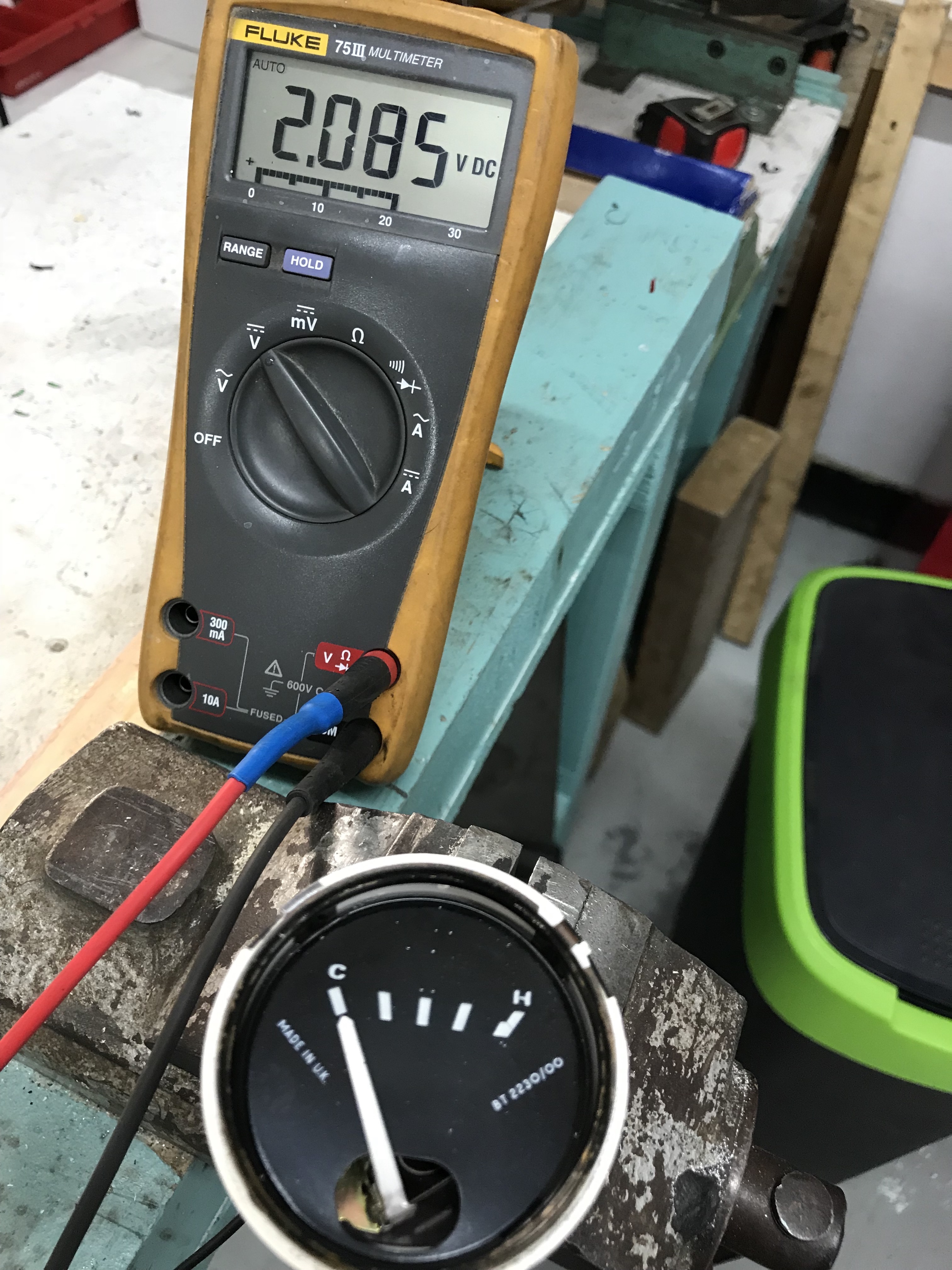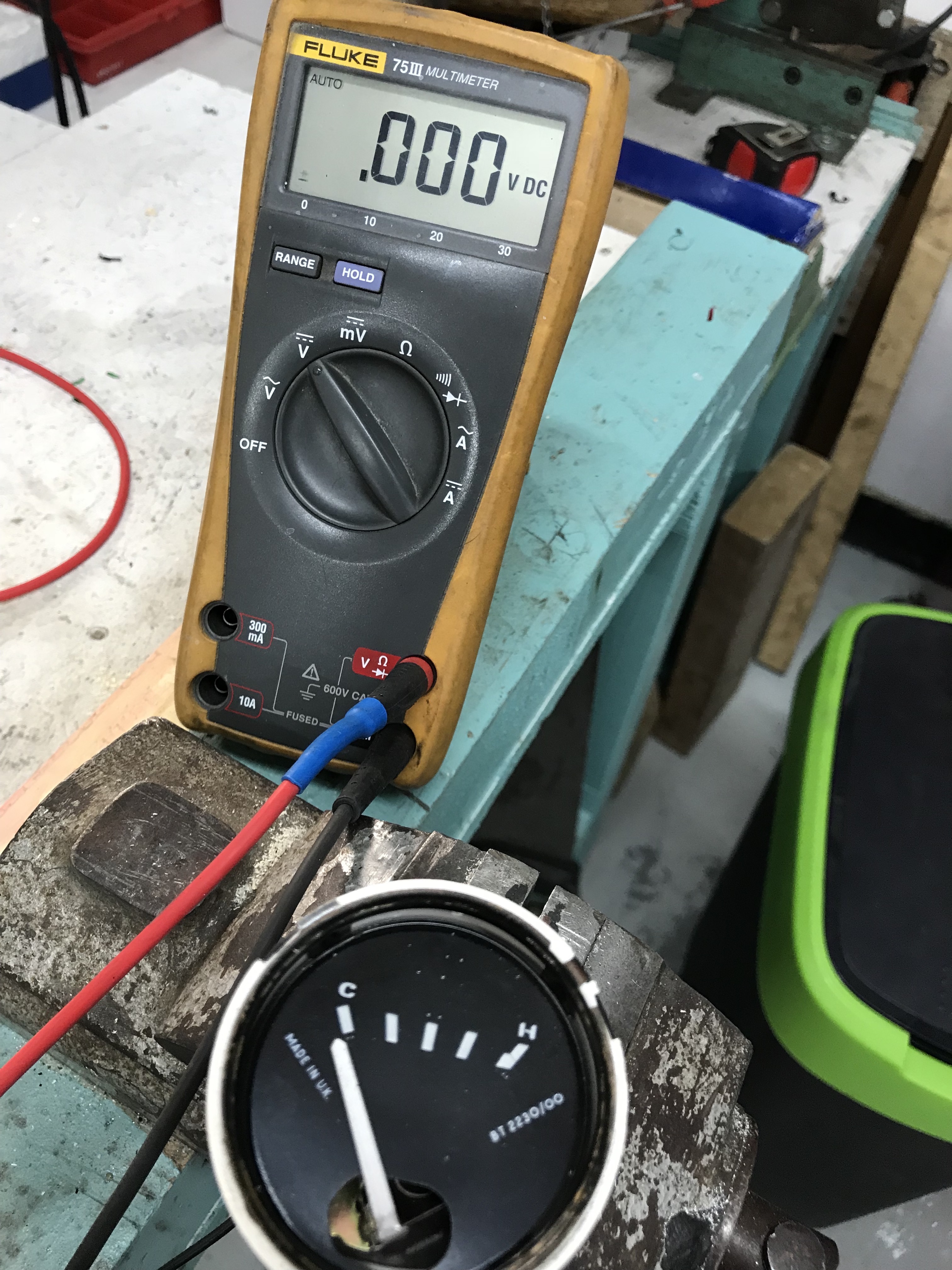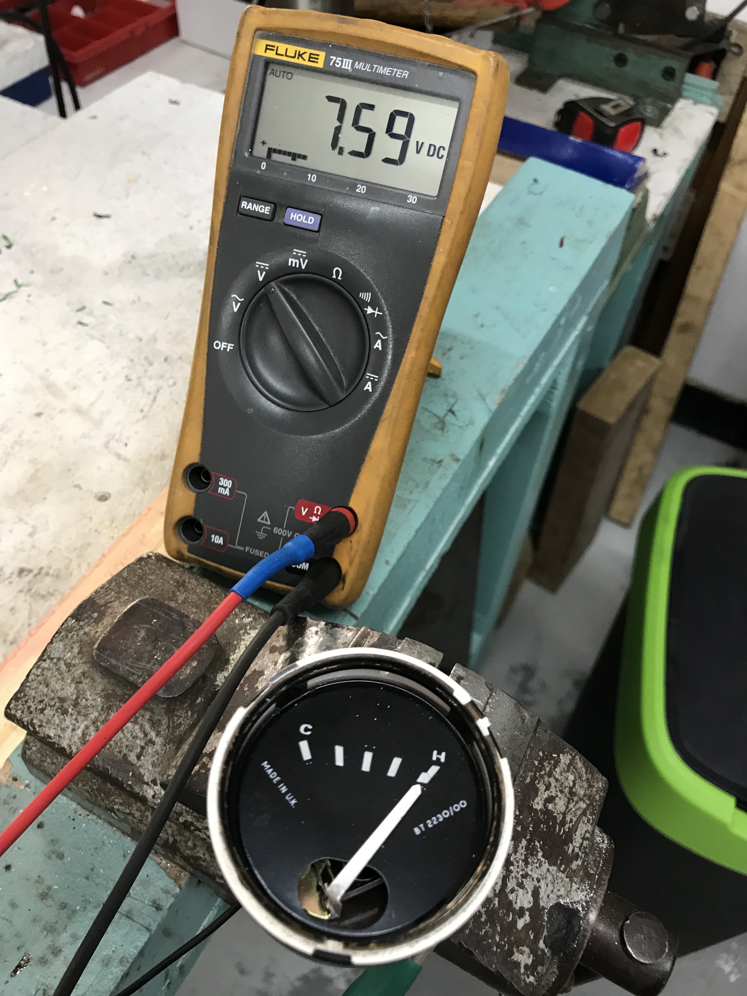 Als we dus weten elke spanning bij welke stand van de meter hoort kunnen we het geheel kalibreren. Dit is belangrijk want dan weten we dat de meters de juiste waarde aangeeft. Vaak denken wij dat de motor te warm wordt, dus een juiste afstelling van de temperatuurmeter is belangrijk om daar iets over te kunnen zeggen. De TR6 heeft een meter die slechts vijf markeringen heeft (0, 1/4, 1/2, 3/4 en 4/4) maar geen indicatie van wat de temperatuur werkelijk is. Standaard aflezing bij een normale temperatuur is tussen een 1/4 en 1/2, waarbij de meter dichter bij de 1/2 staat.