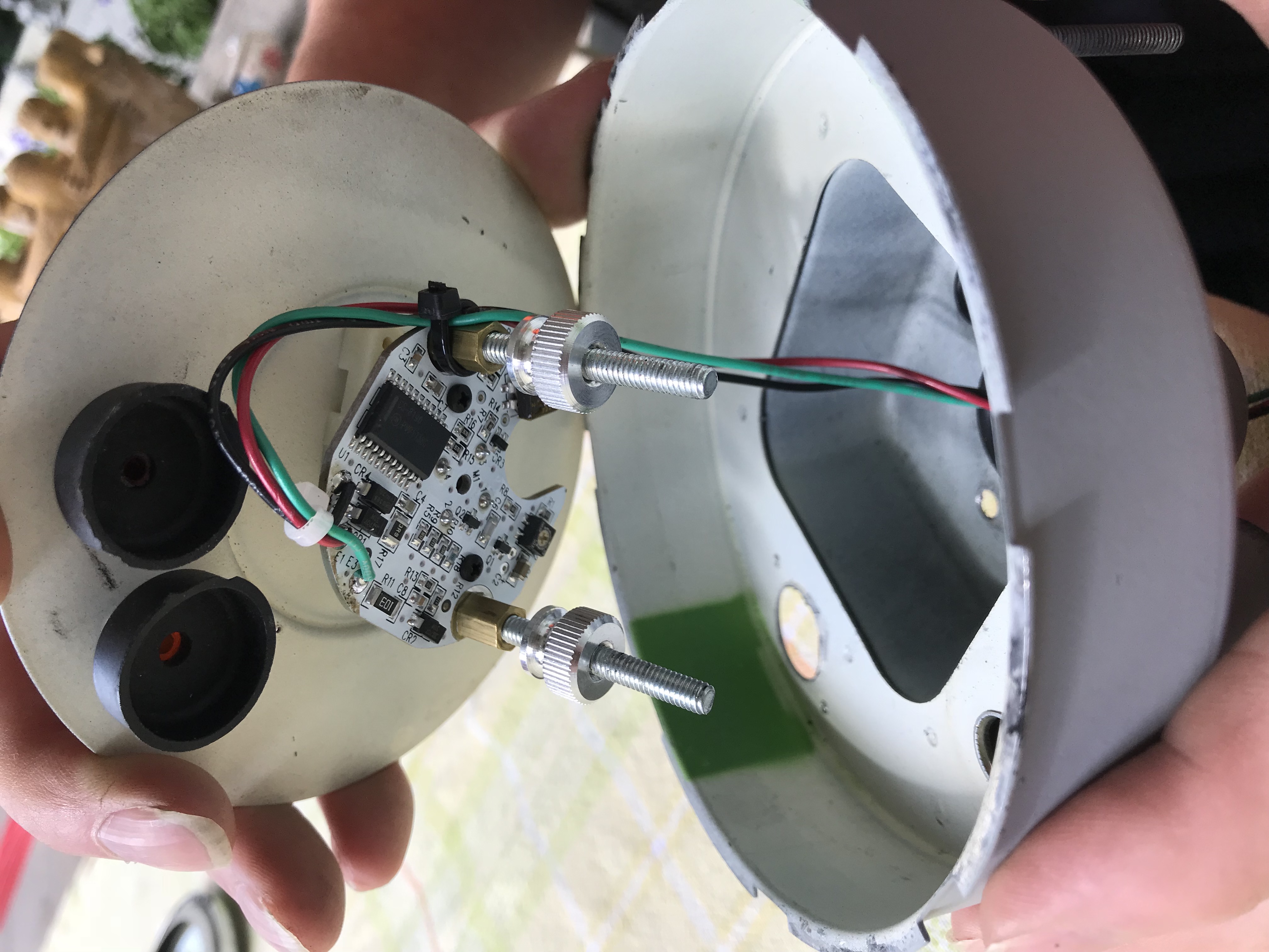 Daarna is het een kwestie van het nieuwe binnenwerk aan de originele wijzerplaat vastschroeven zonder dat we hoeven te boren en de naald op de as drukken. De 0 positie zoekt de elektronica vanzelf op zodra er spanning op het printje komt. Dus daar geen stress over.