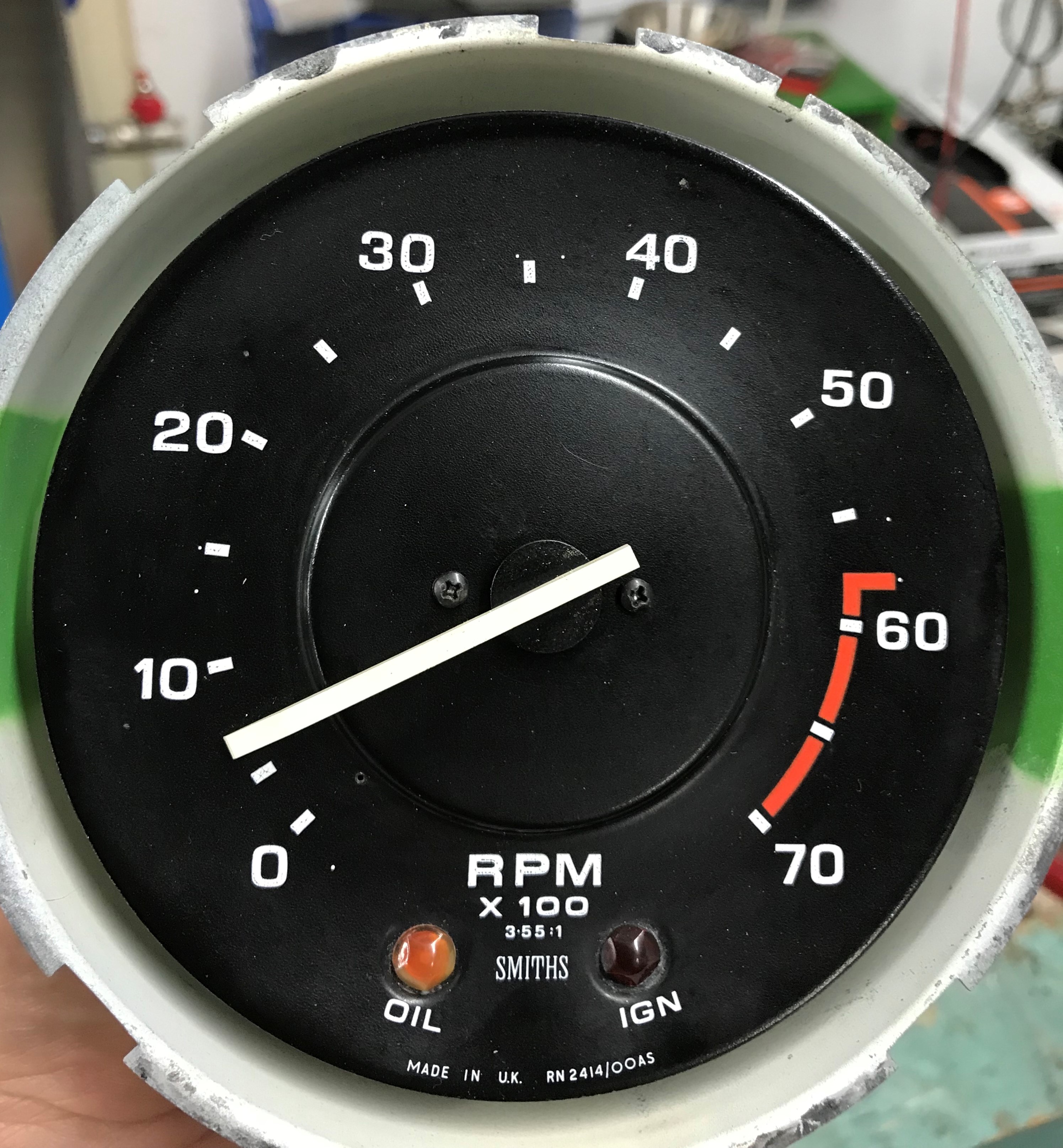 De oplossing komt van het merk Autometer2), een toerenteller met de juiste schaalverdeling en naar verwachting een klein binnenwerk zodat het past in de originele toerenteller.