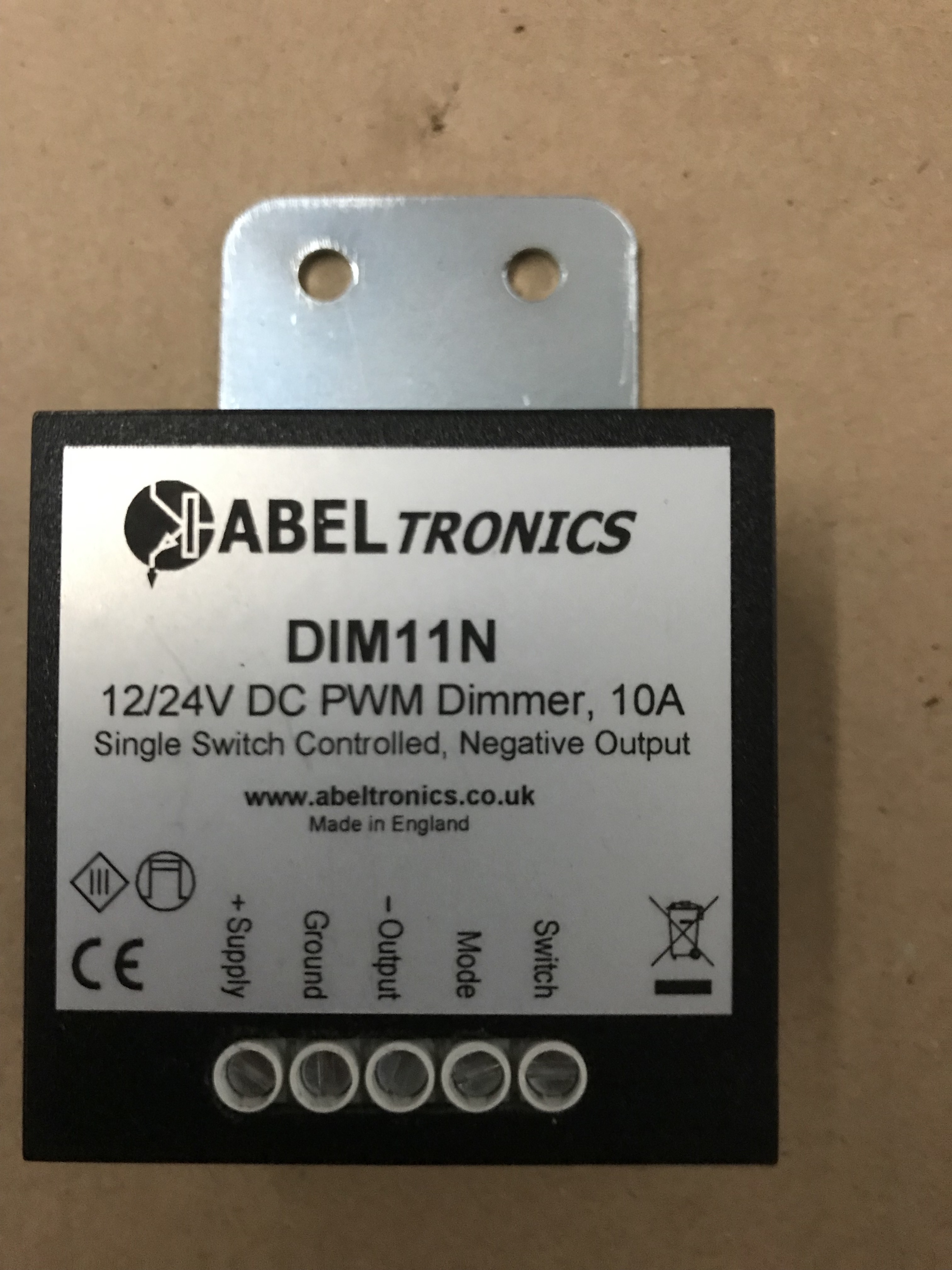 De oplossing voor onze dimuitdaging vinden we ook (opnieuw) bij de firma Abeltronics.co.uk. De module, type DIM11N,2) welke via een momentary switch de output kan regelen waarbij die output negatief is.