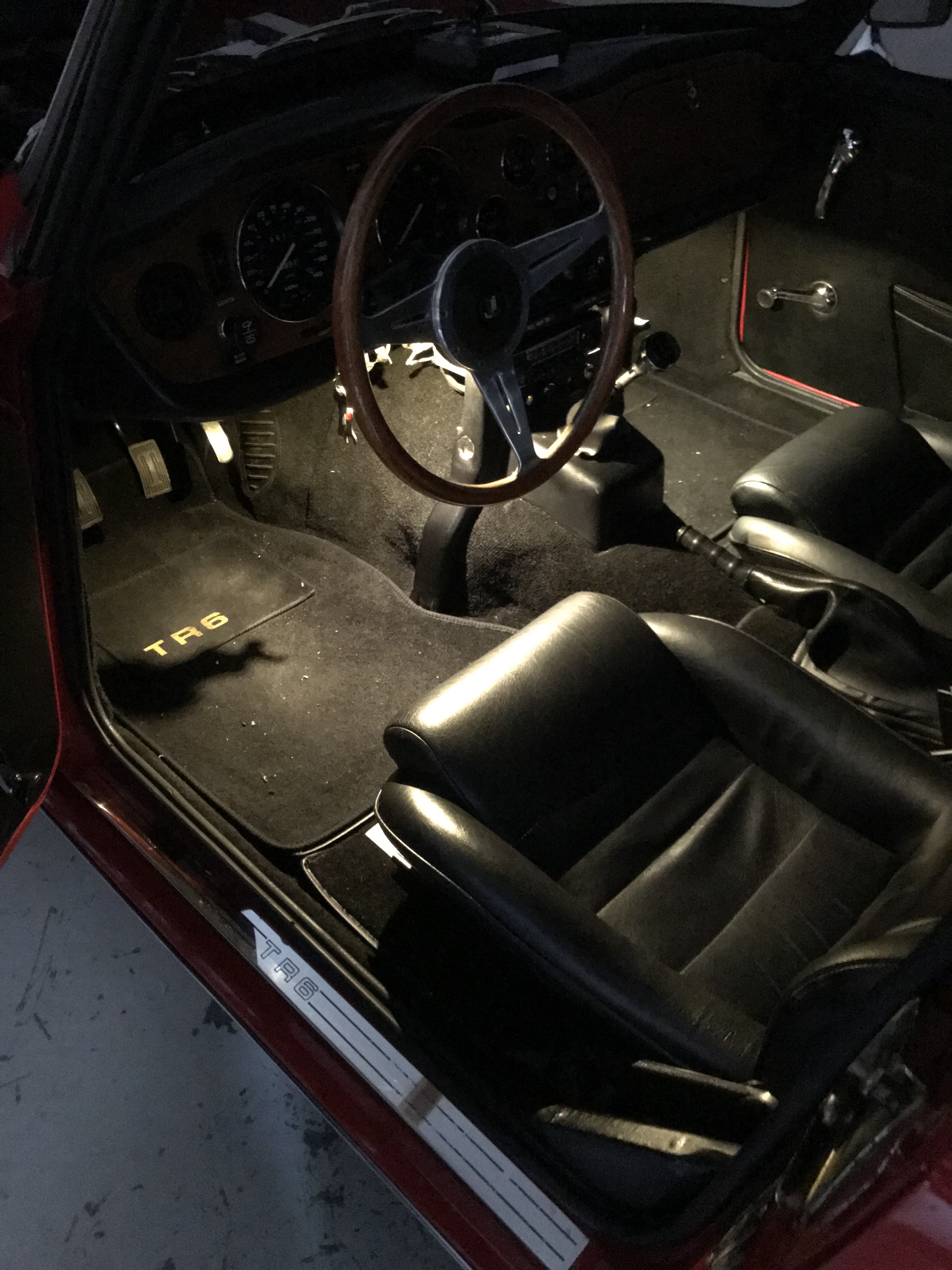 Bij de moderne auto’s blijft, eventueel programmeerbaar, de binnenverlichting ’s avonds gedimd branden zonder dat dit hinder oplevert bij het rijden. Dit zou voor onze TR’s ook wel lekker zijn want het “donkere gat” bij de voeten is dan weg en geeft net voldoende licht om bijvoorbeeld nog iets te pakken, als passagier, uit een tas bijvoorbeeld.