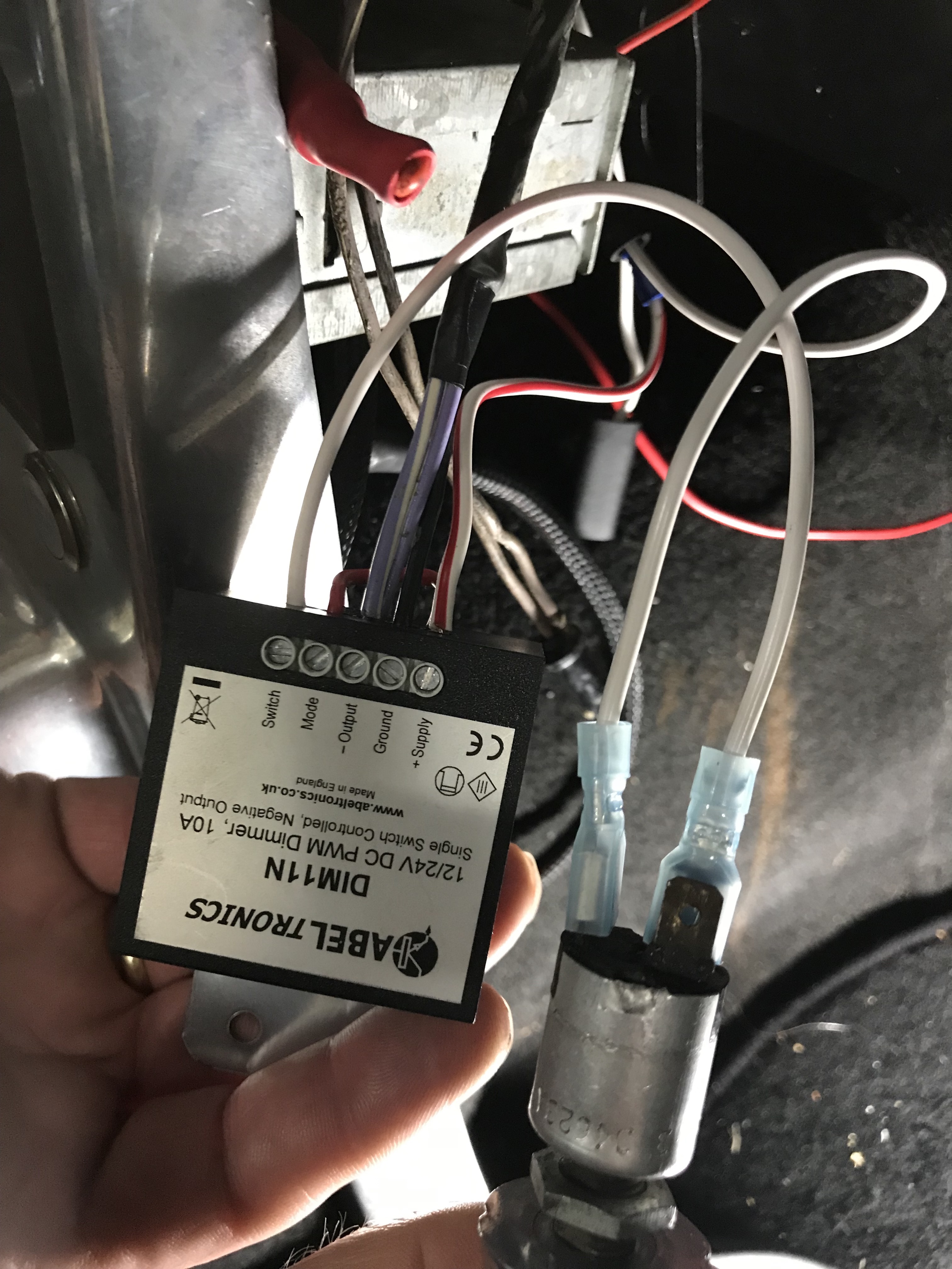 Verder nodig een 12V voeding (geschakeld via de gewone verlichting) en een schakelaar die alles kan dimmen en wij hebben een pracht oplossing.