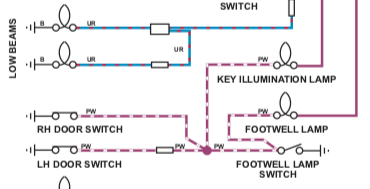 | Output | Reeds aanwezige Paars/witte draad van de footwell lamp switch voor gebruiken | |