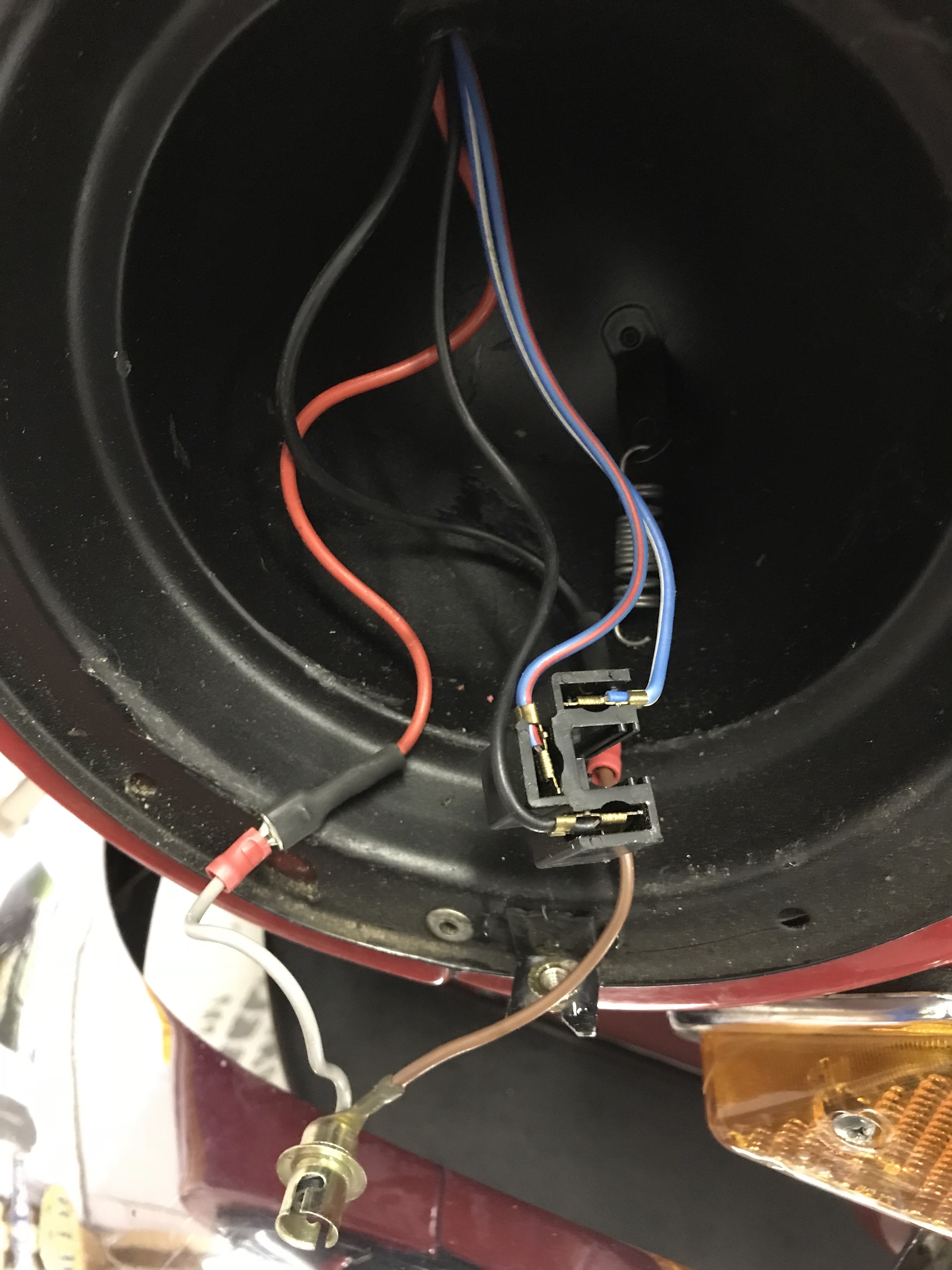 Bij mijn TR6 (USA) zijn de knipperlichten aan de voorzijde, boven de bumper, als een gecombineerd knipper-/stadslicht 3). Voor die laatste gebruik ik een 12V 21/5W led in 2 kleuren: 21W is oranje en 5W is wit. (BAY15D). Dus het stadslicht brandt wit en als de richtingaanwijzer wordt geactiveerd, komt de 21W oranje kleur erbij.
