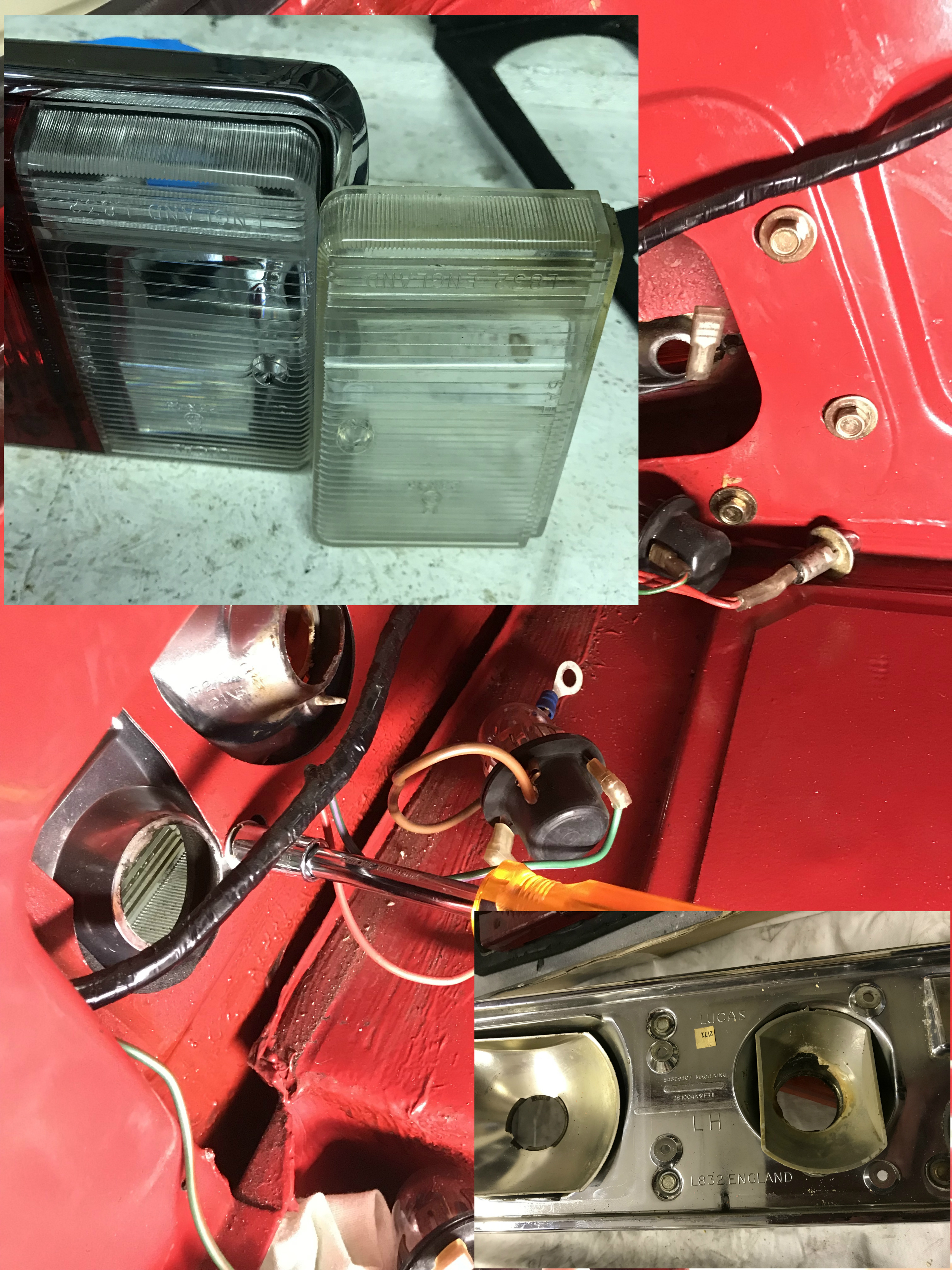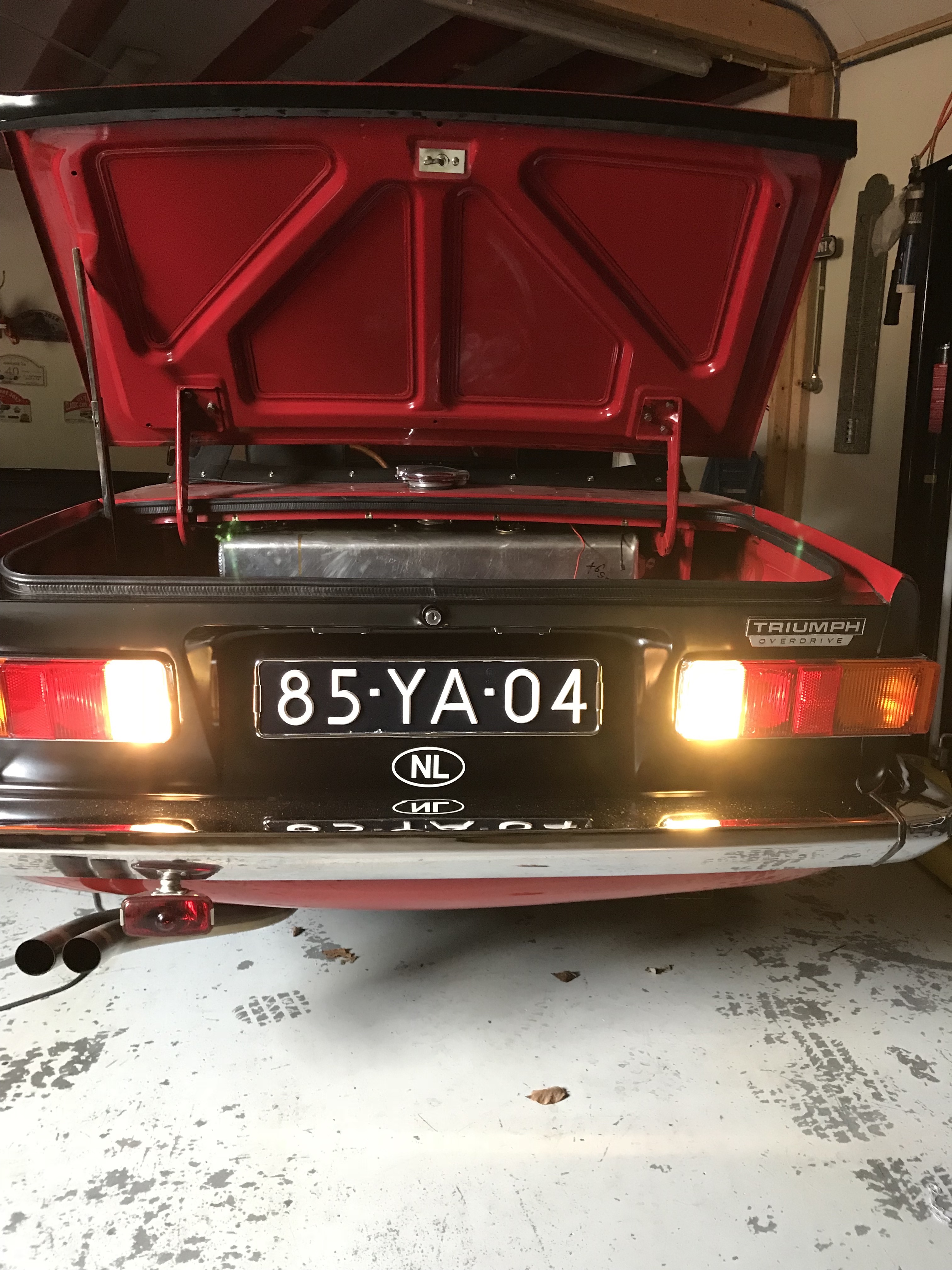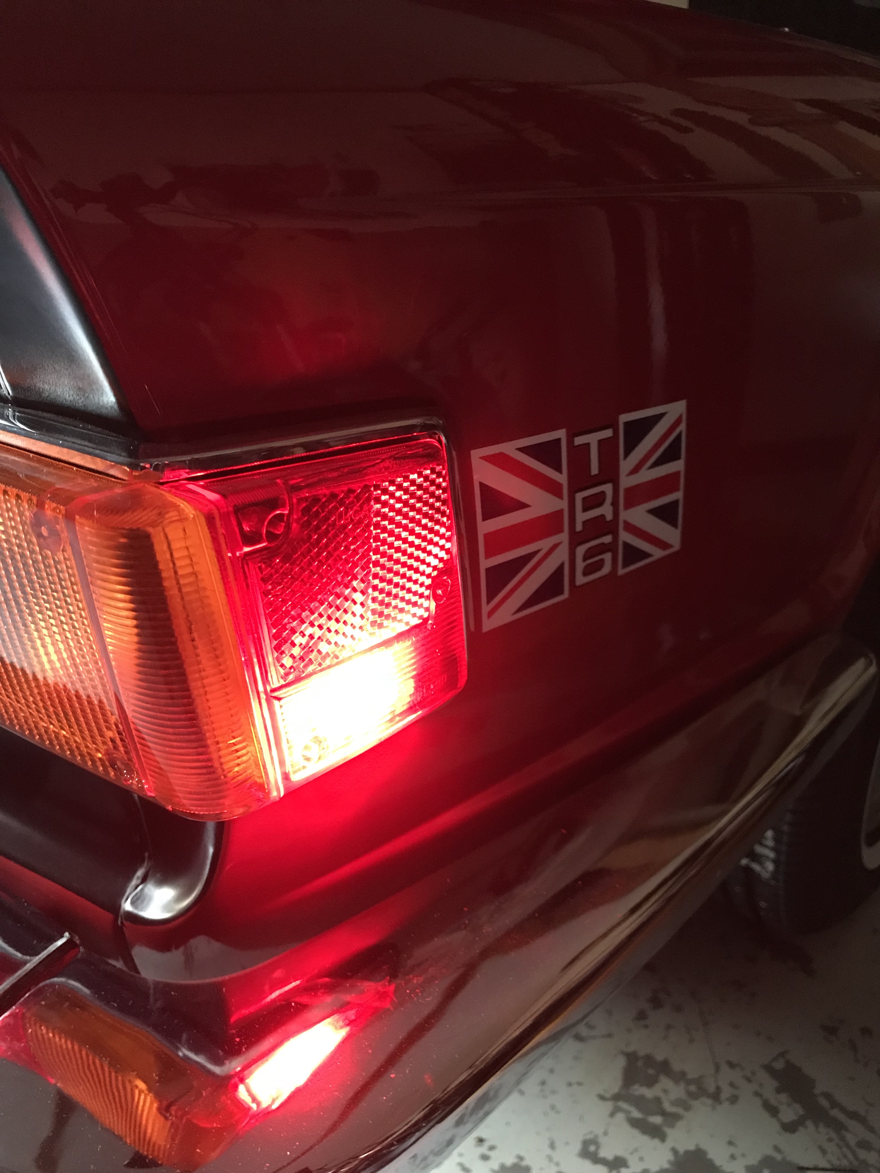 Dat was allemaal theorie, de voorwaarden zijn nu duidelijk. Achterlichten moeten rood zijn, knipperlichten oranje en de sidemarkers rood (USA TR6 uitvoering), meer dan 600 lumen voor de achterlichten en, zeker niet onbelangrijk, qua maat (lengte) moet het ook passen.