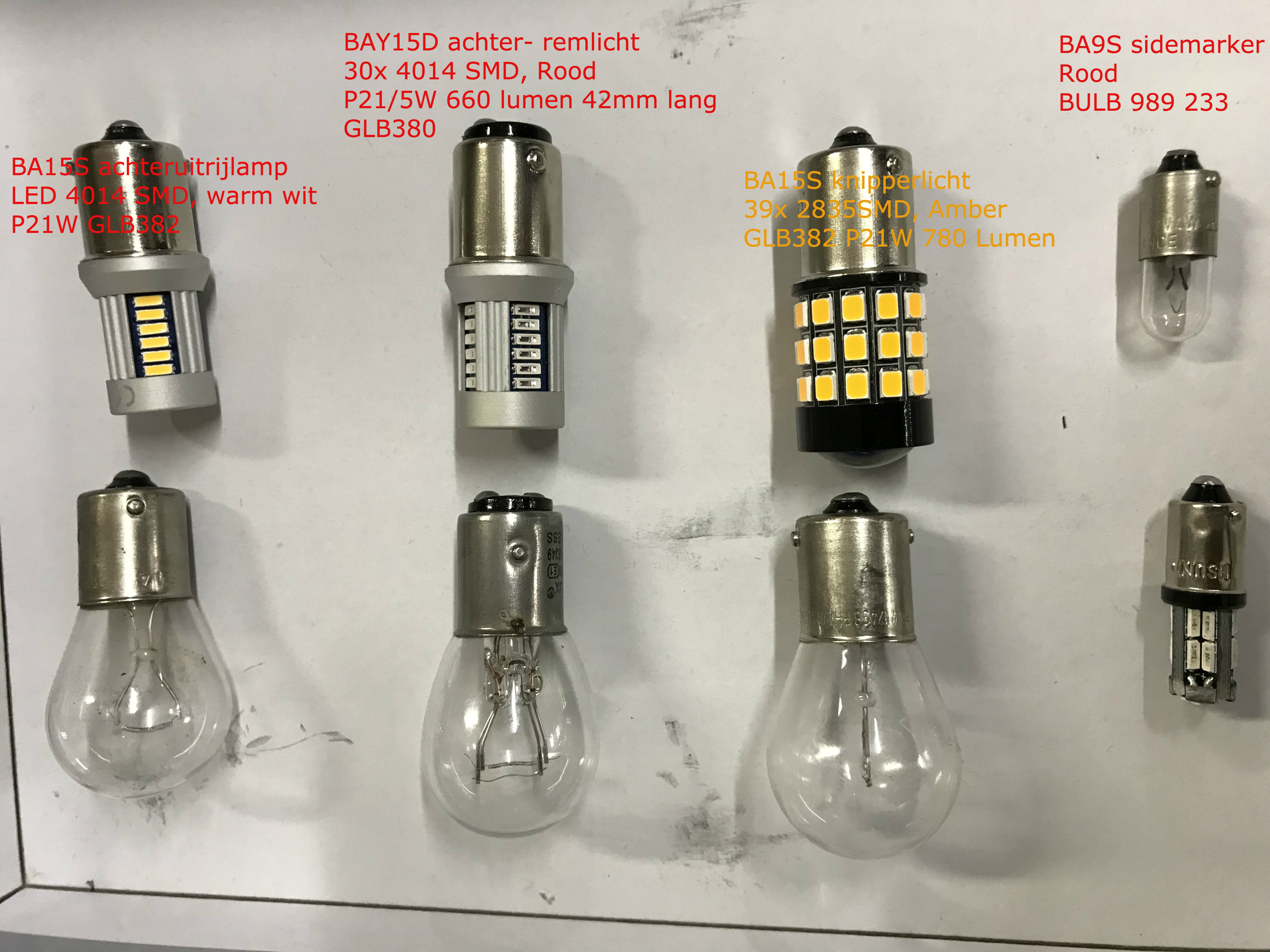 Mijn auto heeft de uitvoering met Duplolampen en apart een stadslichtlampje. Stadslicht vervangen we ook voor een LED. Deze heeft een BA9s fitting in de uitvoering warm wit (3.000K) met aan de voorzijde een lens om het licht extra naar voren te verspreiden.